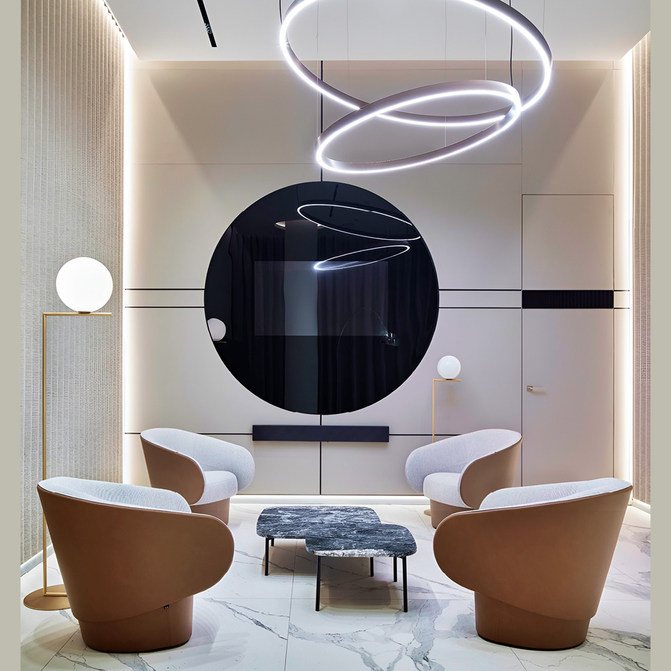 Отполированная поверхность сияет и переливается, словно спокойное озеро с кристально чистой водой. Глянцевые поверхности, благодаря своей способности отражать свет, особенно эффектно смотрятся в помещениях с необычным освещением.